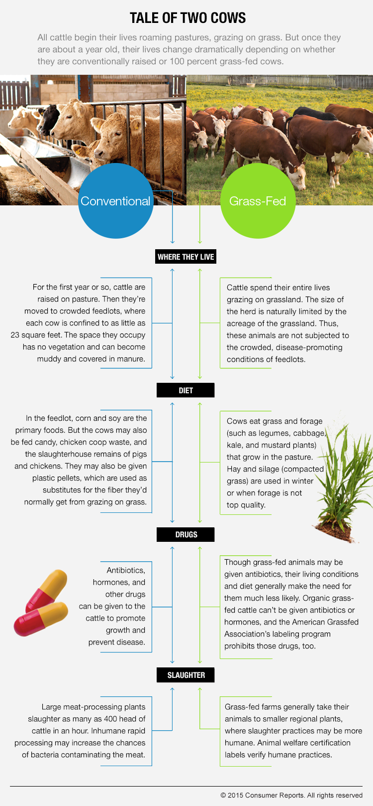 Antibiotics were also given to cattle to promote weight gain (although just how the drugs do that is unknown), but in 2013 the Food and Drug Administration issued voluntary guidelines to stop that practice. Previously, ranchers could buy those drugs over-the-counter and give them to their animals, but the FDA has proposed that antibiotics be used only under the supervision of a veterinarian. “That doesn’t mean, though, that anti­biotics can’t be used for disease prevention anymore,” says Jean Halloran, director of Food Policy Initiatives at Consumer Reports. “Vets can still authorize their use to ‘ensure animal health,’ so the status quo of feeding healthy animals antibiotics every day can continue.” Widespread daily and unnecessary use of antibiotics in healthy animals in turn fuels the spread of antibiotic-resistant bacteria, which has become a serious public-health threat.