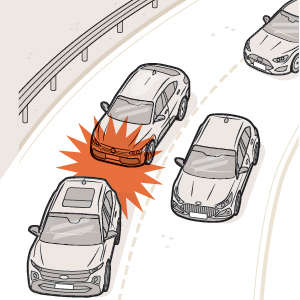 Blind spot warning notifies the driver of vehicles hidden to the side. Some systems provide an additional warning if the driver activates the turn signal.