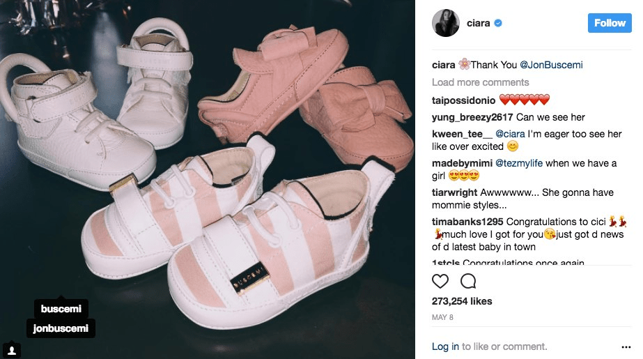 For instance, the woman recently posted a picture of three pairs of baby shoes, accompanied by the caption, “Thank You @JonBuscemi.” In the picture, Wilson tagged the shoes “buscemi” and “jonbuscemi.”