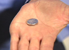 Coin-sized batteries are easily misdiagnosed following x-ray since it's hard for physicians to distinguish them from a coin. A small battery can eat its way through the esophagus and cause life-threatening or permanent disabling injuries if it's not removed within two hours. (See our laboratory demonstration of the internal damage it can cause. )