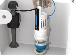The HydroRight ($24.99) and Dual Flush ($39.98 at Home Depot) kits replace the inner workings of a toilet with dual flush units. One flush setting uses a smaller amount of water to remove liquid waste and paper—the setting needed most of the time. The second produces a fuller flush for solids. The partial-flush setting of the Dual Flush, made by Fluidmaster, cuts the gallons-per-flush level in half, so a 1.6-gpf toilet that meets current federal standards will use only 0.8 gpf in that mode. The HydroRight, made by MSJI Inc., uses a third to half the water on the partial-flush setting. Both units can be adjusted to use more or less water per flush.