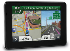 Part of the new Prestige line for 2012, the 3590 LMT includes a five-inch glass touch screen, voice-activation, Bluetooth compatibility, lifetime live traffic information and map updates, and Garmin's new "Smartphone Link" app. This latter feature enables the device to communicate and share data with compatible Android phones, and consequently, the 3590 LMT can display weather information, fuel prices, and traffic camera images on its navigation screen. (The Garmin Nuvi 3550 LM is shown.)