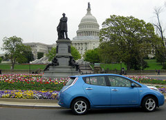 The Consumer Reports office in our nation's capital houses our advocates: passionate people who work tirelessly to make the marketplace better for consumers. The advocates have worked closely with the Auto Test Center and our corporate headquarters this past year on fuel economy issues, speaking before Congressional committees and presenting our expert perspective on raising the standards for passenger vehicles. (Read: "Consumers Union supports higher fuel economy standards.") It seemed absolutely fitting to give this staff a chance to live with the Leaf, and what we discovered is that life in Washington, D.C. is far more conducive to owning an electric car. (The irony, however, is that we had to trailer the range-limited Leaf to the District of Columbia.)