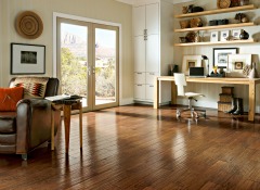 American Scrape sells in five-inch planks with a choice of stains named for different regions of the country, such as Red Rock Canyon. The solid plank is stapled and costs about $4 to $5 per square foot, uninstalled. The engineered costs $3 to $4 uninstalled and can be glued or floated as well as stapled. Both solid and engineered floors should be available nationally by the spring.