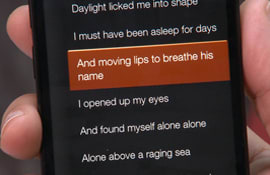 The Fire Phone lets you see the lyrics of some songs, which you can access by pulling a tab from the left side of the screen. Tap any stanza shown in the lyrics tab, and the music player will jump to that part in the song.