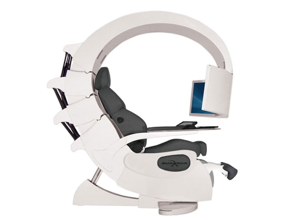 If you ever wanted to feel like Link from "The Matrix," and you have about a Corvette's worth of cash to spare, this futuristic workstation is perfect for you. The Emperor 200, by MWE Lab, features three 27-inch screens, Bose speakers, an air-filtering system, and a touch-screen control pad that lets you recline the chair with the help of electric actuators. If you get the urge to re-enact the cliched "evil guy" chair reveal, you can plunk down extra for a 360-degree rotating podium.