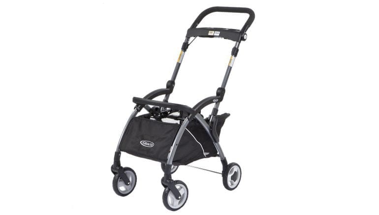 También puedes trasladar al bebé desde la carriola hasta la ubicación del asiento infantil para el auto, asegurada en el asiento trasero del auto, y viceversa, sin despertarlo. El Snugrider Elite de Graco sirve para una gran variedad de asientos infantiles para automóviles de Graco, muchos de los cuales obtuvieron puntuaciones altas en nuestra clasificación de asientos de autos; es fácil de maniobrar, de plegar y se sostiene por sí solo cuando está doblado.