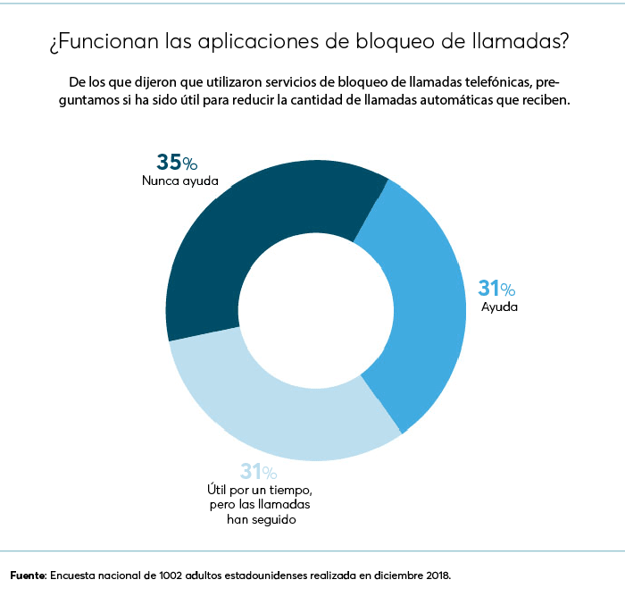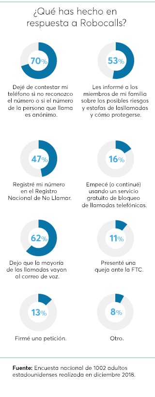 Durante años, las compañías telefónicas ignoraron cuando estalló la crisis de llamadas automáticas, dicen los defensores de los consumidores. "Arrastraron los pies y no resolvieron el problema", dice Maureen Mahoney, analista de políticas en la división de defensa de Consumer Reports. "La FCC otorgó a las compañías telefónicas el derecho de ofrecer servicios avanzados de bloqueo de llamadas en 2015 y de bloquear ciertos tipos de llamadas telefónicas falsamente ilegales, incluso sin el consentimiento del consumidor en 2017. Pero aún hoy en día, no todas las empresas lo están haciendo".