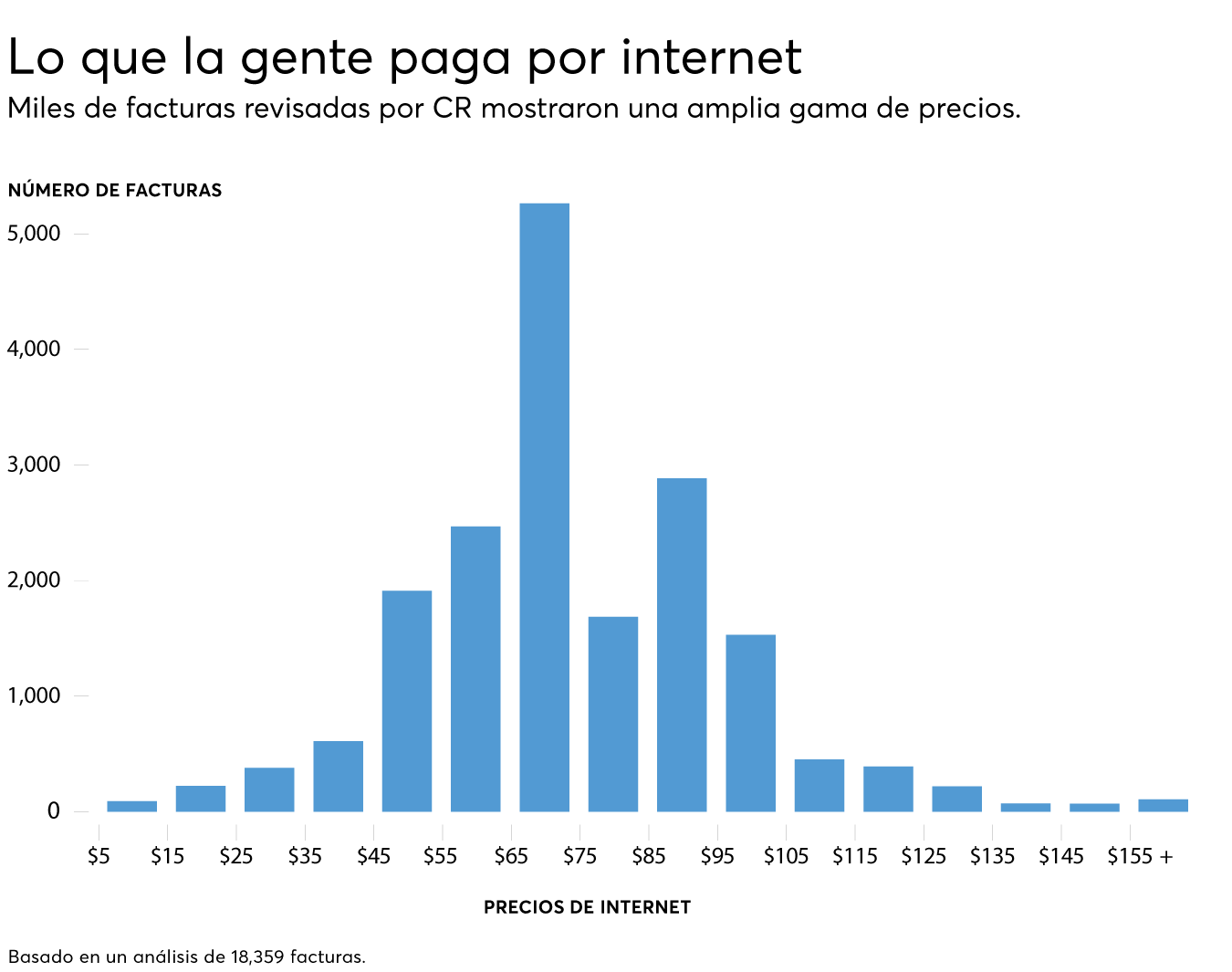 CR luego pasó más de 10 meses extrayendo y analizando datos de dichas facturas. Si bien este no es un estudio representativo a nivel nacional y no es predictivo del mercado de banda ancha, es uno de los esfuerzos más ambiciosos de este tipo para comprender cuánto pagan los consumidores en un momento dado.