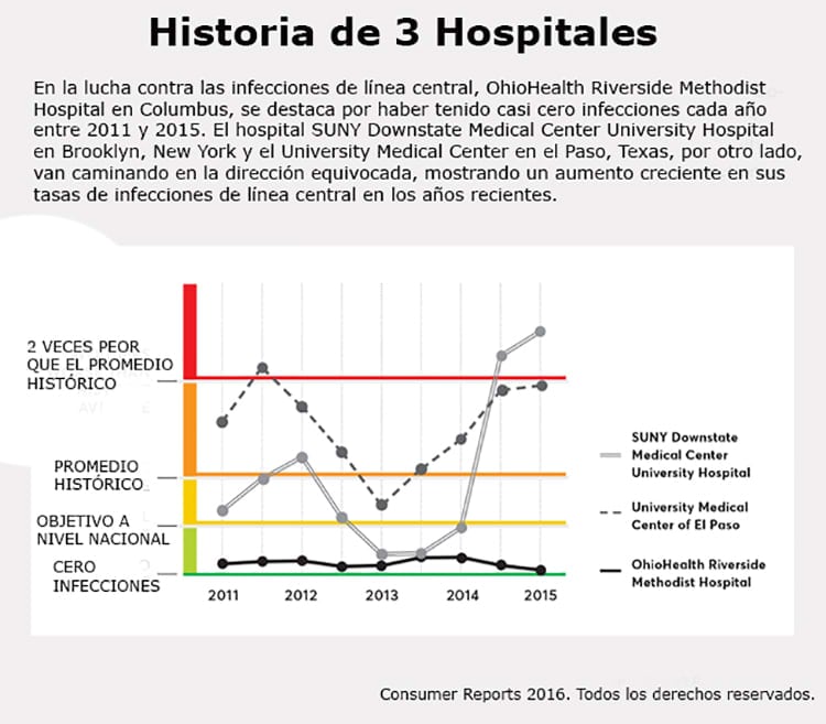 Incluso algunos hospitales grandes en áreas urbanas han mejorado. Uno que sobresale es: Mount Sinai St. Luke’s-Roosevelt Hospital, en la ciudad de New York. El día que lo visitamos en octubre de 2016, la pizarra fuera de su ICU indicaba que llevaban 969 días sin una sola infección de línea central.