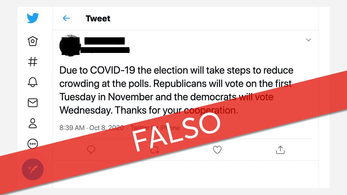 Las publicaciones que sugieren que la elección es cualquier día que no sea el martes 3 de noviembre o que algunas personas pueden votar en fechas diferentes son falsas.