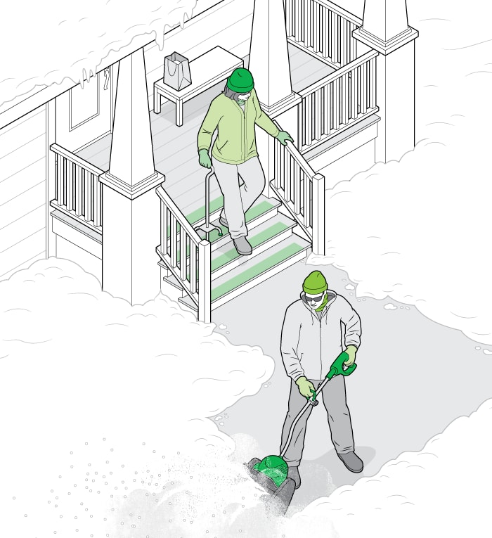 Keep warm, stay steady on your feet, and avoid overexertion