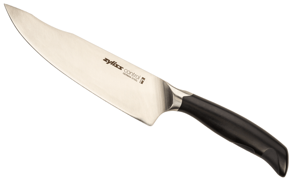 The Zyliss Control 8" Chef Knife elicited some of the most divided opinions of all the knives in our evaluation. It’s basically a knife that’s designed (in some capacity) for cutting the wrong way. A flat divot sits on top of the handle where it meets the blade, providing a place to rest your thumb or index finger while cutting.